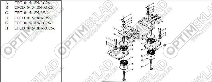 | 17 | N042-350200-000 | Кронштейн правый | E CPQ10/15/18N-RW20; F CPQD10/15/18N-RW20 |