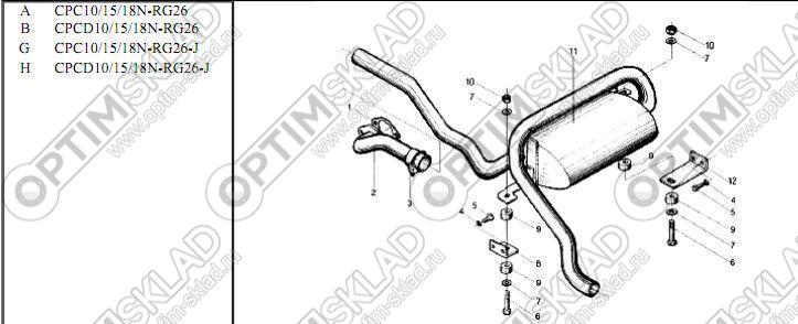 | 11 | N042-321000-001 | Выхлопная труба в сборе | E CPQ10/15/18N-RW20; F CPQD10/15/18N-RW20 |