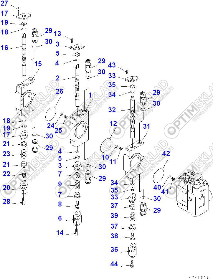 5-ти секционный гидрораспределитель в разборе для Komatsu FD30T-16