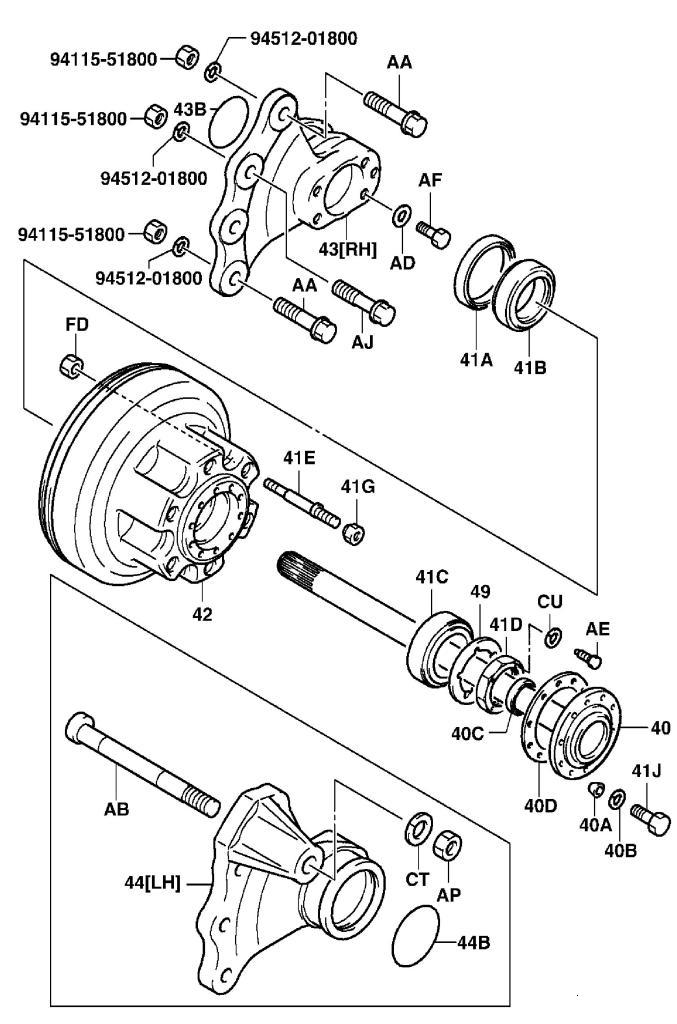 | 44 | 42212-13310-71 | КРОНШТЕЙН КРЕПЛЕНИЯ ВЕДУЩЕГО МОСТА, ПРАВЫЙ | 9908-, 10,14,15 |