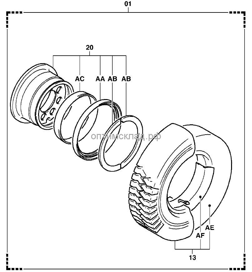 | 13 | 44140-10480-71 | ШИНА | 9808-0609, 10,14,15,18 "5.00-8-8" |