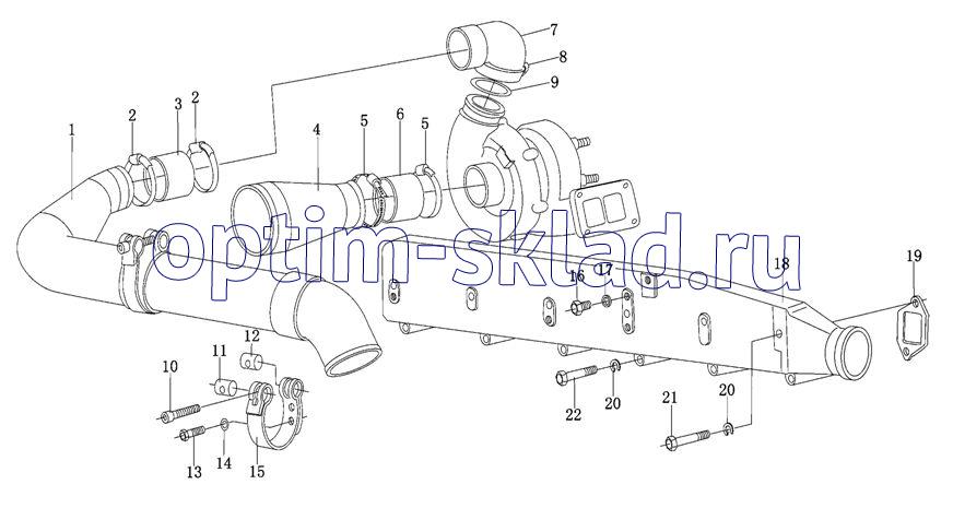 Система впуска и выпуска ОГ II для Weichai WD10/WD615